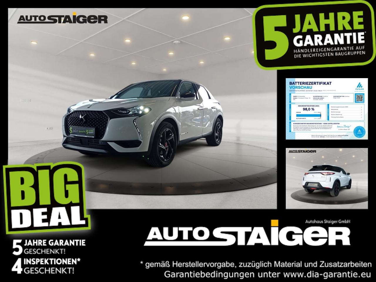 DS Certified Garantie*: DS Fahrzeuge nicht älter als 7 Jahre und mit max. 150.000 km Laufleistung, haben 12 Monate Komplett-Garantie * Gemäß den Garantiebedingungen